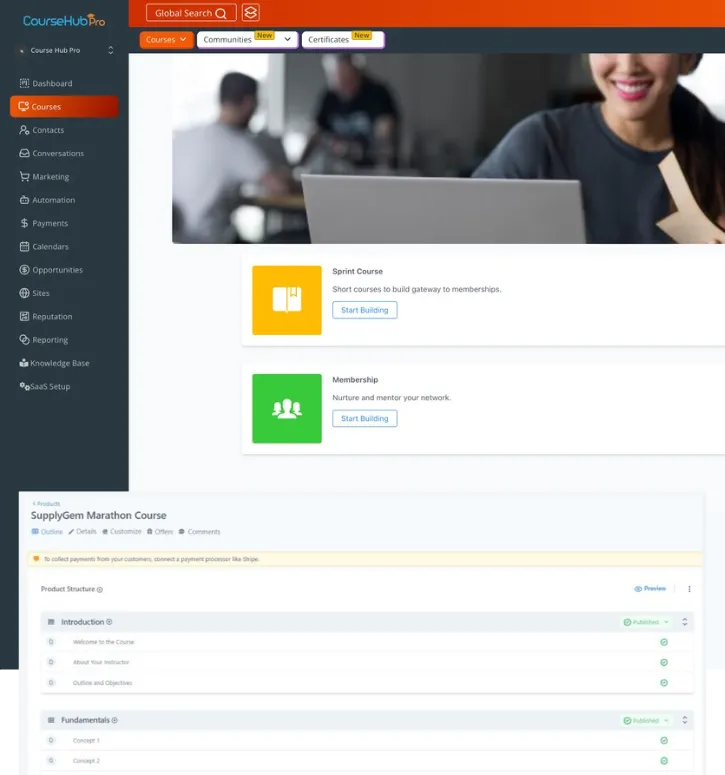 CourseHub Pro has transformed my coaching business. The platform’s flexibility allows me to offer a variety of course formats, from live sessions to self-paced modules. My clients love the professional look and feel of the courses, and I love the ease of use."